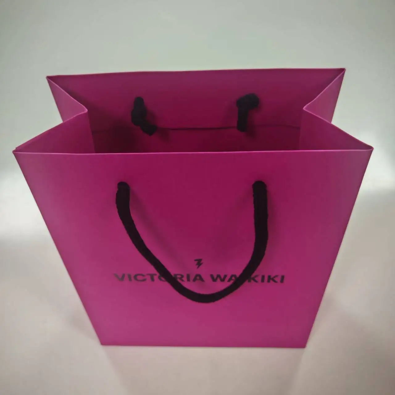Luxe Winkelen Katoenen Handgrepen Fancy Verpakking Paars Aanpasbaar Designer Logo Bedrukt Cadeau Magenta Merk Papieren Zakken